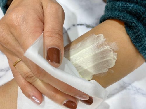 10分ほどそのまま放置したら、ティッシュなどでクリームを拭き取ります。