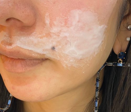 乾くとパックがこのように膜のようになるので、簡単に剥がすことができます。