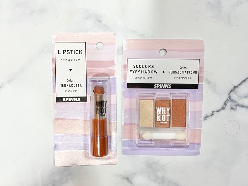 ダイソーの”テラコッタ”リップ&アイシャドウは、人気コラボコスメ「WHY NOT SPINNS」シリーズの新作。