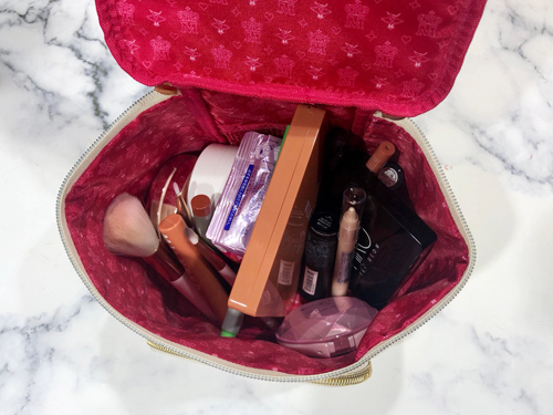 普段使いのコスメポーチ+メイク落としシートや化粧水なども入ります。