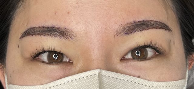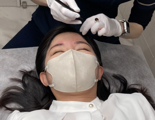 1回目はクリーム状の麻酔でしたが、2回目はブロック麻酔を行い、眉のアートメイク施術をしてもらいました。