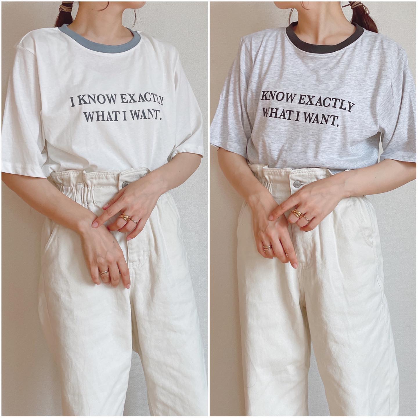 首元のパイピングと英字ロゴが特徴的なTシャツ。