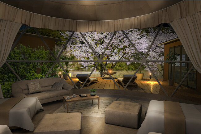 そんな猪名川沿いの景勝地・屏風岩をのぞむスポットに新たなグランピング施設「リバーサイドグランピング猪名川-inagawa-」がオープンします。
