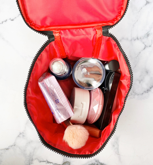 LISA LARSON(R)(リサ・ラーソン)のムック本付録のバニティポーチは、化粧品だけでなく高さのあるボトル系も余裕で収納できる!