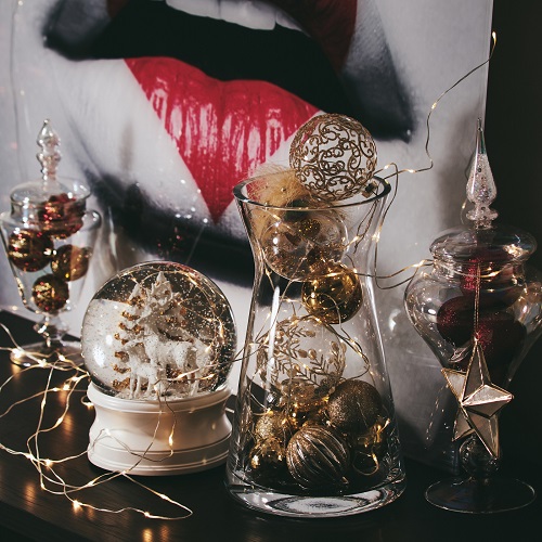 花瓶などの透明な容器にクリスマスオーナメントを入れる飾りアイデア♪