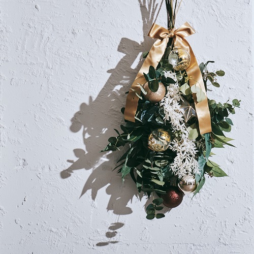 クリスマスブーケやスワッグにクリスマスオーナメントを飾り付けるアイデア♪